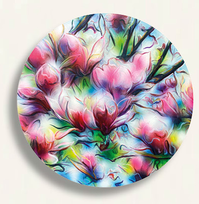 Magnolia Tondo (Kraftwerk) Mischtechnik auf Leinwand Durchmesser 60 cm 2024