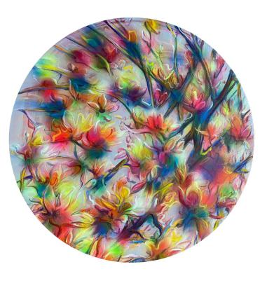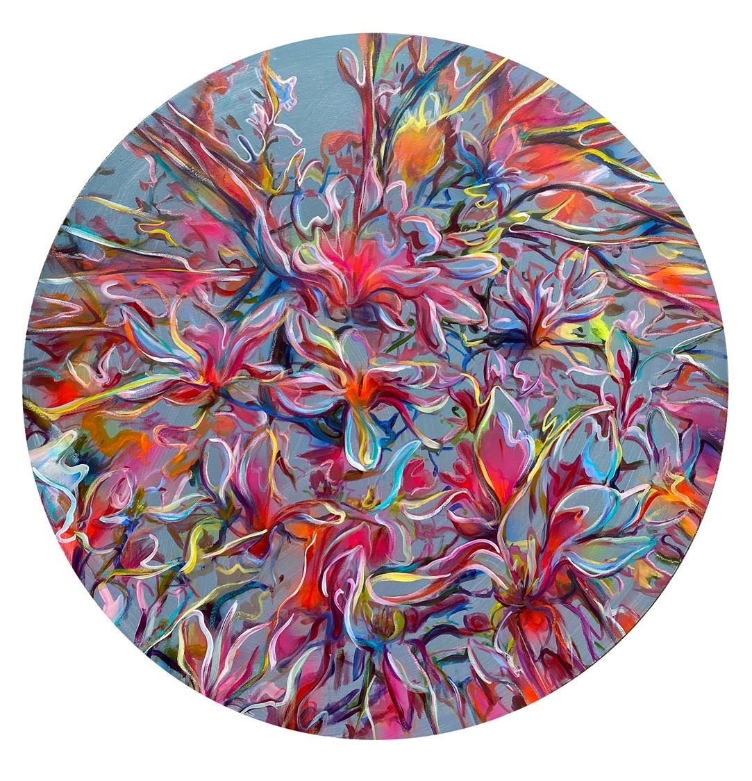 Magnolia Tondo (Electrified) Mischtechnik auf Leinwand Durchmesser 80 cm 2024